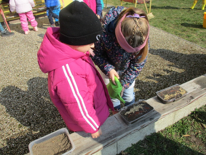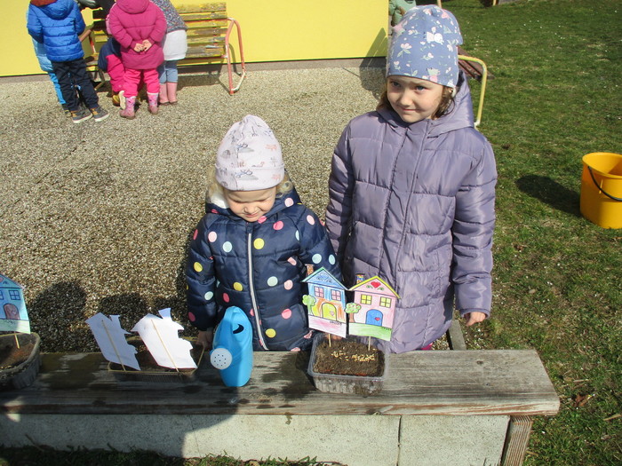Venku se konečně otepluje a my jsme s dětmi nezůstali pozadu! Celý uplynulý týden se nesl v duchu zahradničení a tvoření. Naše třída se proměnila v malé zahradnictví – děti s velkým nadšením sázely semínka řeřichy a ovsa do svých vlastních minizahrádek. Aby se budoucím rostlinkám dobře rostlo, vyrobily jim děti i papírové domečky, čímž vznikly kouzelné světy v květináčích.