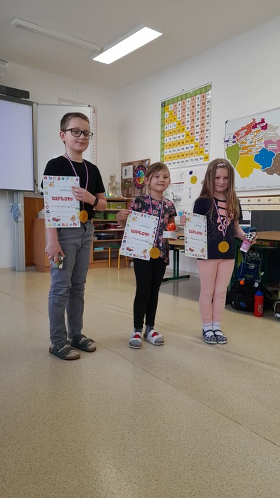 V pondělí 30.3.2026 proběhla v naší škole recitační soutěž, které se zúčastnili i naši předškoláci - Verunka, Tonička, Ivanka a Tobiášek. 1. místo získala Verunka Balicka. Ostatním dětem děkujeme za krásnou reprezentaci.