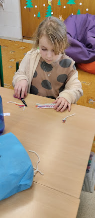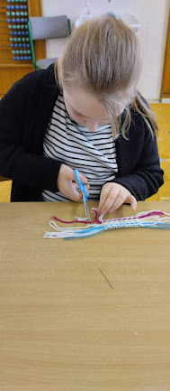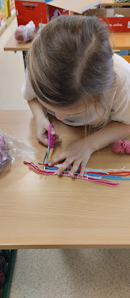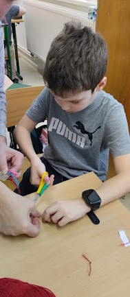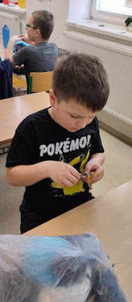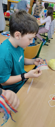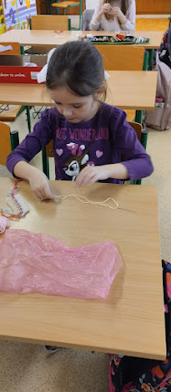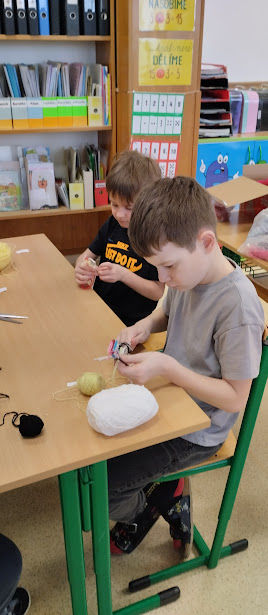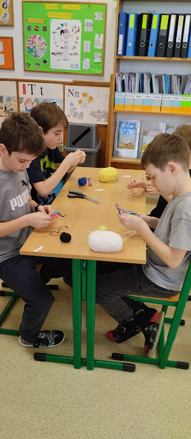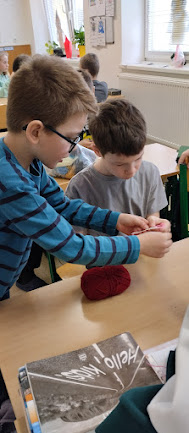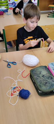 V pracovních činnostech žáky čekala práce s jehlou a vlnou. Tvořili šálu pro medvídka. Pro někoho hračka, pro někoho trápení, ale všichni to s pomocí zvládli. Podívejte se...